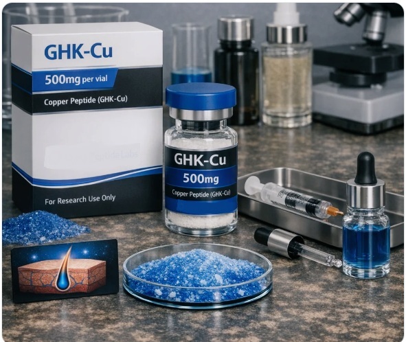 Buy GHK-Cu 500mg online. High-purity GHK-Cu 500mg manufactured under GMP-aligned standards. Suitable for laboratory research and formulation. This compound has been rigorously tested for purity and stability. Our peptides are synthesized using advanced solid-phase peptide synthesis (SPPS) and purified via high-performance liquid chromatography (HPLC) to ensure maximum efficacy and reliability for your research needs. We are your trusted source for pharmaceutical grade peptides.