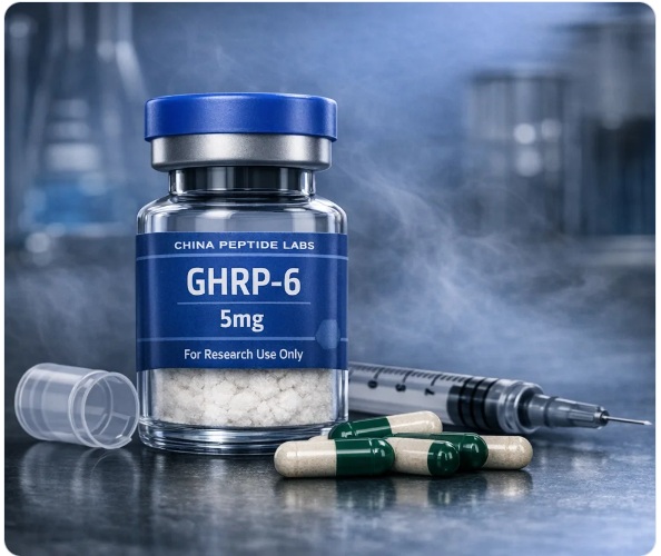 Buy GHRP-6 5mg online. High-purity GHRP-6 5mg manufactured under GMP-aligned standards. Suitable for laboratory research and formulation. This compound has been rigorously tested for purity and stability. Our peptides are synthesized using advanced solid-phase peptide synthesis (SPPS) and purified via high-performance liquid chromatography (HPLC) to ensure maximum efficacy and reliability for your research needs. We are your trusted source for pharmaceutical grade peptides.